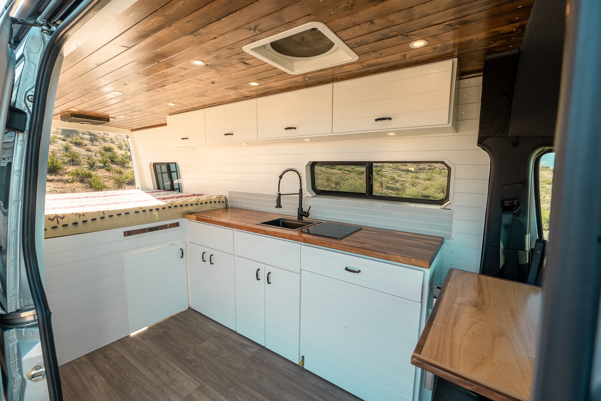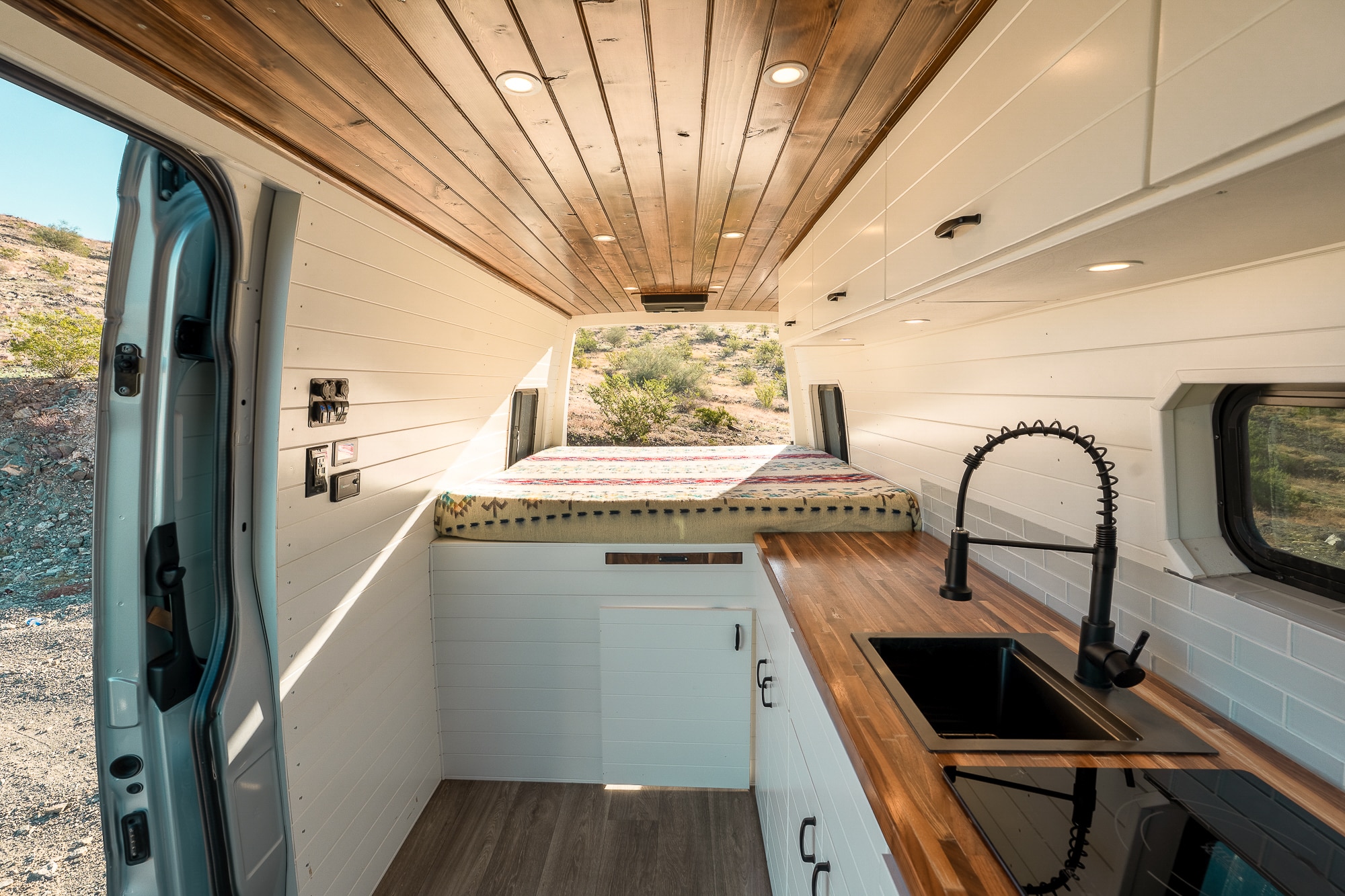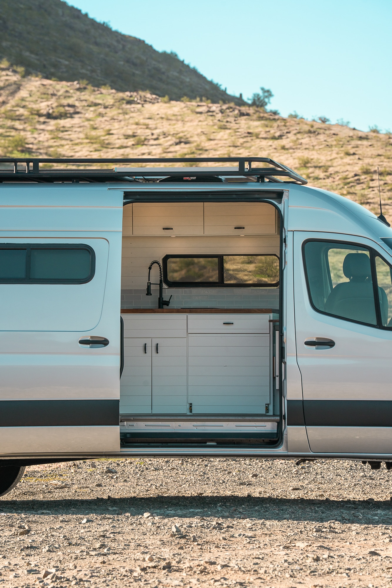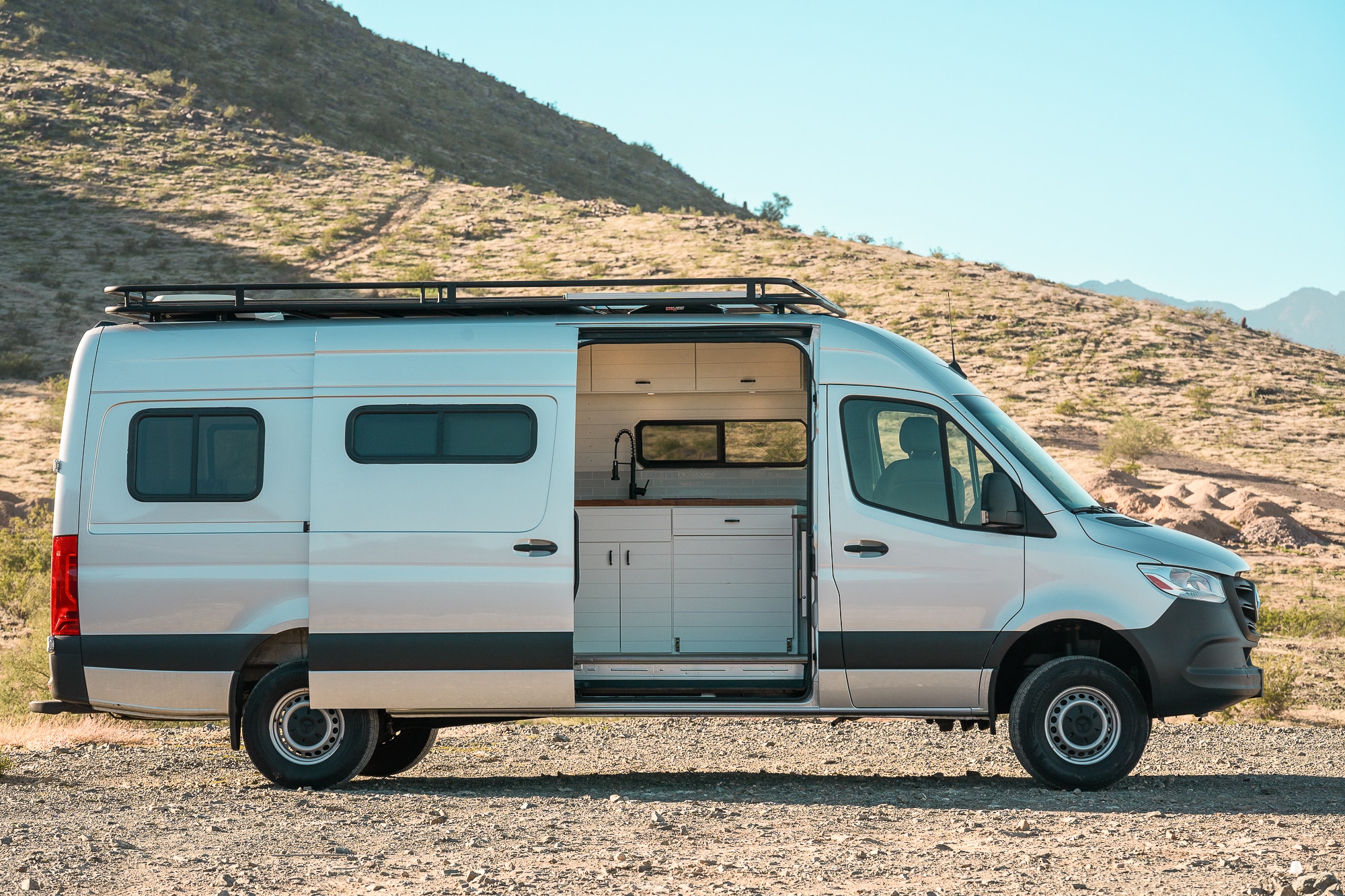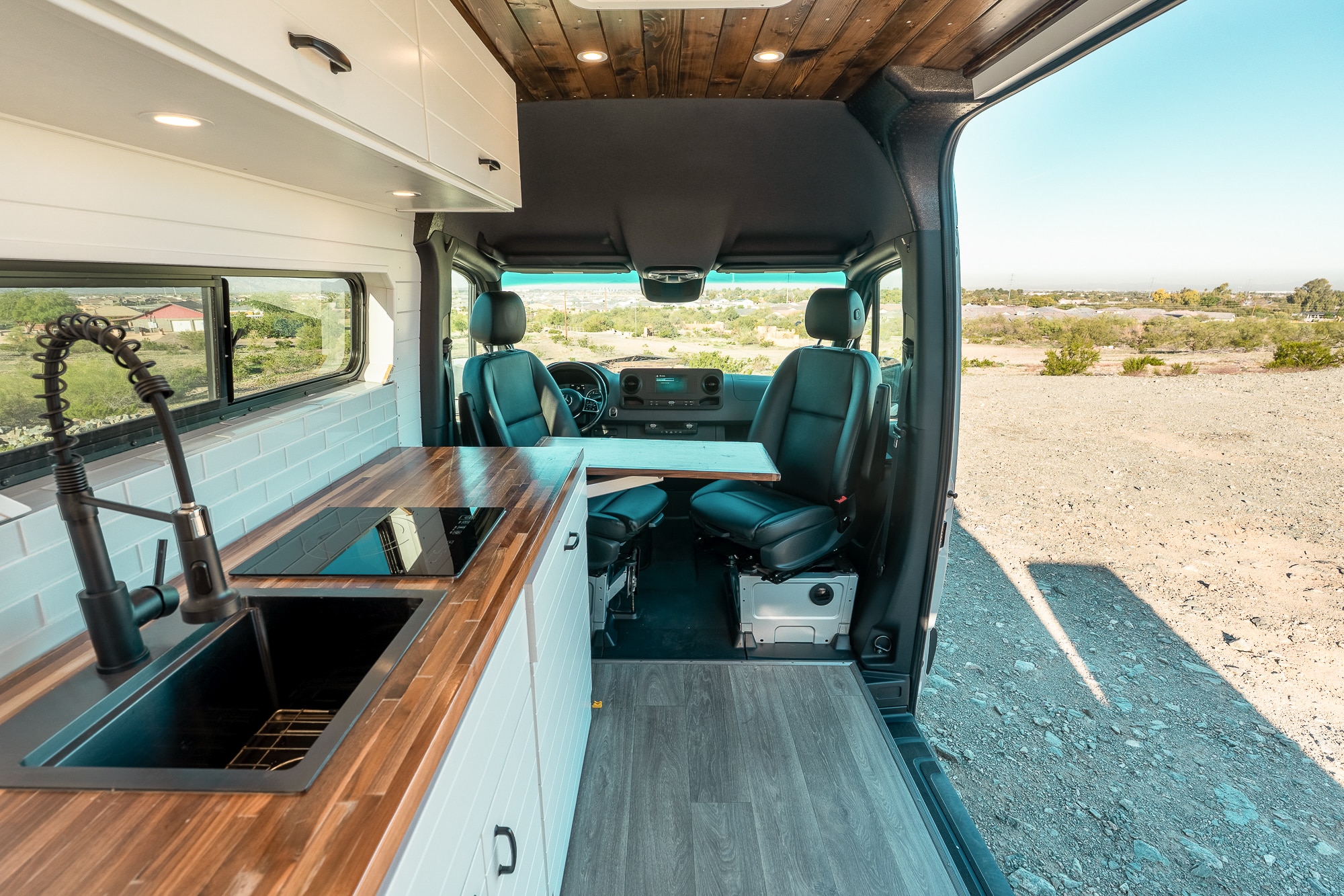 2022 Mercedes Sprinter highroof 170WB EXTENDED! This beauty features a Tommy roof rack where the solar panels are stored, along with a wooden deck for stargazing. VAN HAS 52K ORIGINAL MILES! Clean carfax- Arizona rust free!